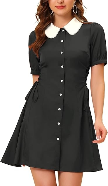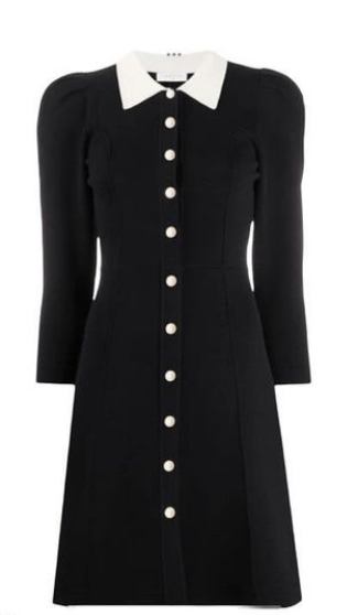 For this occasion, Princess Beatrice stunned in New York and wore a black button-down ‘Milane’ mini dress from Sandro Paris, featuring a contrasting white collar and elegant puffed shoulders.