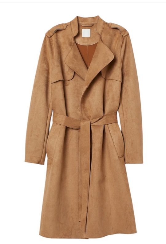 She layered the dress with a tan faux suede trench coat from H&M, which had recently sold out due to its popularity. Hopefully they will restock?