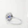 Garrard captures the beauty of Princess Diana’s iconic engagement ring with this elegant interpretation, which is part of the house’s ‘1735’ collection. Cast from platinum, this breathtaking ring is set with a blue oval-shaped sapphire that’s surrounded by clusters of diamonds and displayed upon a sparkling flush band.