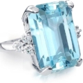This color of aquamarine would be considered AAA quality, the rarest and most valuable. The second best color is a medium rich aqua, or AA quality. Any blue aquamarine that have a slight gray undertone fit into the A category. Finally, aquamarine that have a very dark and opaque aqua color are considered B quality grade.The prongs style is very traditional and nice. They hold the stone very firmly. Heavy, strong and high quality for lifetime wearing, with a luxurious feel.