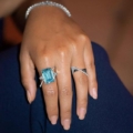 Princess Diana inspired Aquamarine ring crafted with 14K white gold and 2.00 carat emerald cut stone.
