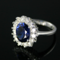 Handcrafted inspired Princess Diana sapphire and diamond ring. Crafted with 4.06Ct natural Sapphire and 14K white gold, customisation is avaliable.