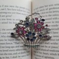 This royal replica is inspired by one of Queen Elizabeth’s most sentimental jewels the flower basket brooch. Our version is made from Rhodium and gold plated copper. Featuring simulated Diamonds, Sapphires, rubies and Emeralds. The original brooch was thought to have been given to Elizabeth in 1948 by her parents as a present to mark the birth of her first child. Elizabeth wore the brooch often including in Charles’s first official photograph.