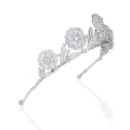 Worn by Elizabeth Bowes-Lyons on her wedding to Albert Duke of York (future George Vi) the Strathmore tiara was purchased by Elizabeths parents for the occasion. Crafted using cubic zirconia and 18K white gold plating this crowns dimensions are 4.6cm H x 16cm W.