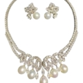 Art Deco 925 sterling silver CZ Zircon Princess Diana’s pearl drop necklace set, worn by the Princess on her final offical engagement before her death in 1997.