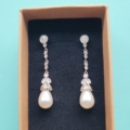 These royal replica earrings are inspired by Queen Camilla’s diamond pearl drop earrings that she wore to Royal Ascot in 2009 . Our version of these earrings are Rhodium plated for added shine featuring Cubic Zirconia Diamonds and a faux Pearl.